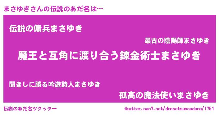 | ヒーロー風カッコイイあだ名 | 『愛の使者まさゆき』『スーパーマサユキ』 |