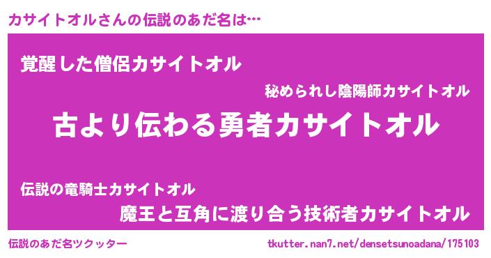 | 男性向けラノベタイトル風あだ名 | 『カサイトオルという概念が存在しない退屈な世界 』 |