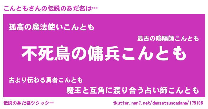 | 意味不明あだ名 | 『自称こんとも』『ペロリンこんとも』 |