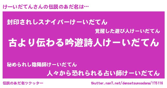 | 意味不明あだ名 | 『自称けーいだてん』 |