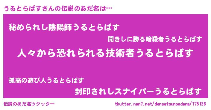 | ヘコむあだ名 | 『つくし』『うるにー』『うるっ子』 |