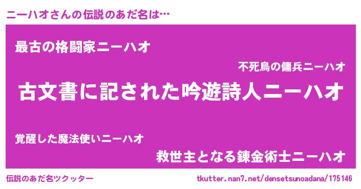 | 意味不明あだ名 | 『永久保存ニーハオ』『自称ニーハオ』 |