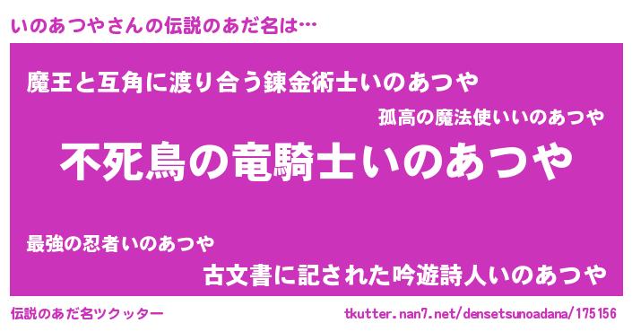 | 意味不明あだ名 | 『住所不定無職いのあつや(7歳)』 |