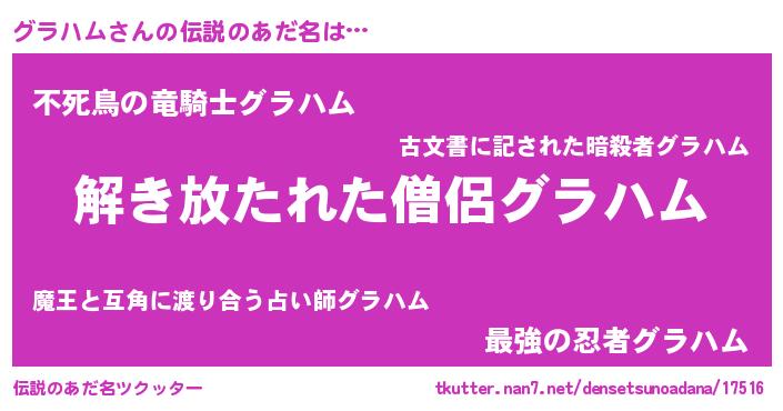 | ヒーロー風カッコイイあだ名 | 『魔戒騎士グラ』『スーパーグラハム』 |