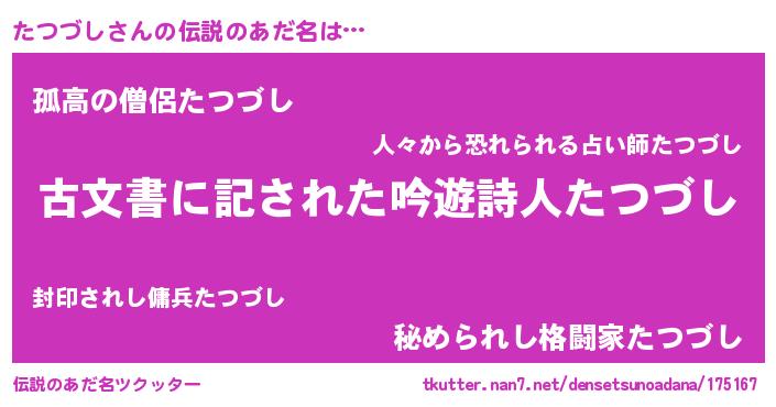 | 男性向けラノベタイトル風あだ名 | 『誰もが恐れるあのたつづしが、ぼくの専属メイドになるようです。』 |