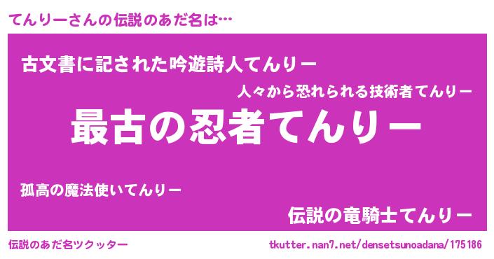 | ヒーロー風カッコイイあだ名 | 『サイバー戦士テンリー』『仮面テンダー』 |
