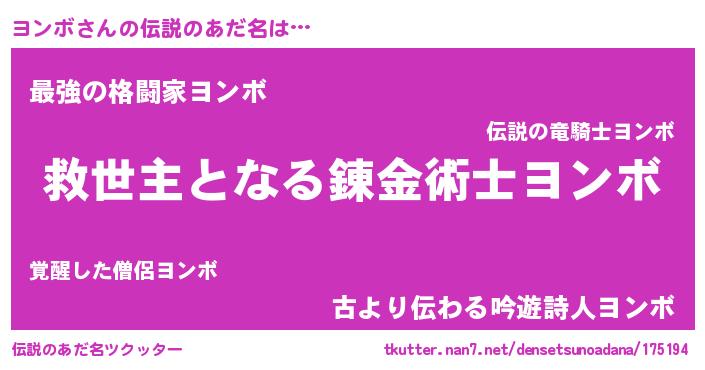 | 男性向けラノベタイトル風あだ名 | 『ノーゲーム・ノーヨンボ』 |