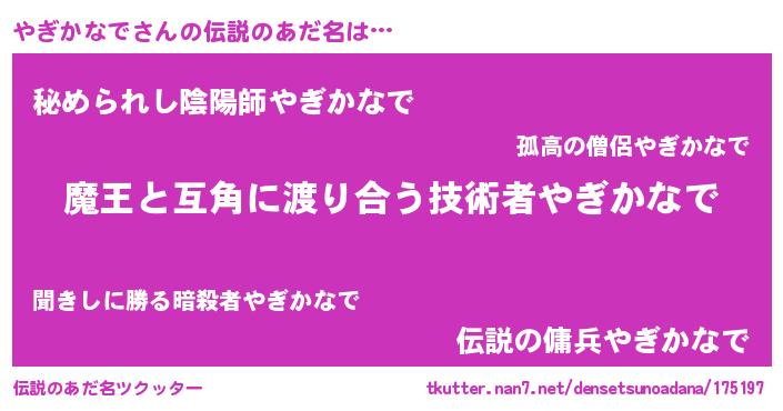 | ヒーロー風カッコイイあだ名 | 『サイバー戦士ヤギカナデ』 |