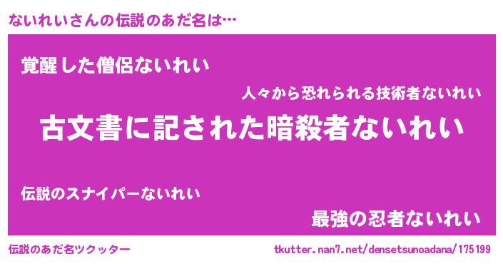 | ヘコむあだ名 | 『ないれい(笑)』『ないっ子』 |