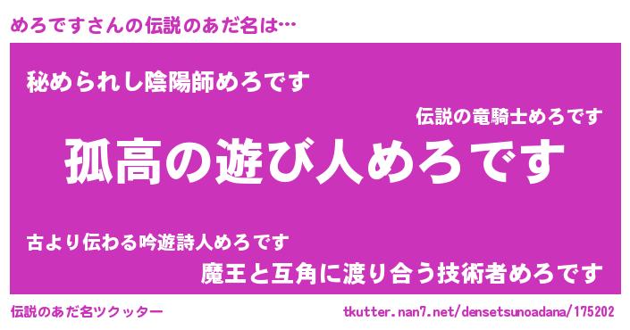 | 意味不明あだ名 | 『とにかく怪しいめろです』 |