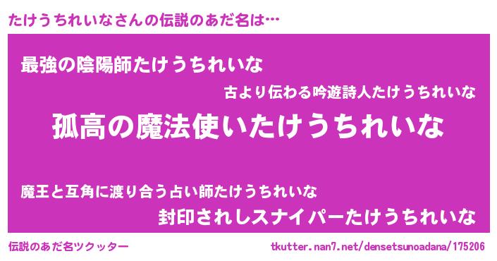 | 胡散臭い通販商品みたいなあだ名 | 『信頼と実績のサプリメント…その名も「たけうちれいな」』 |