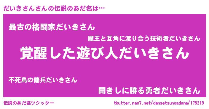 | ヒーロー風カッコイイあだ名 | 『究極戦士ダイキサン』『幻影騎士ダイ』 |