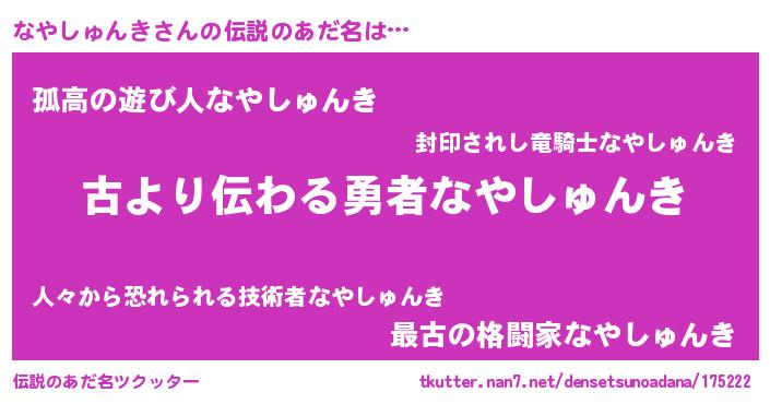 | 意味不明あだ名 | 『永久保存なやしゅんき』 |