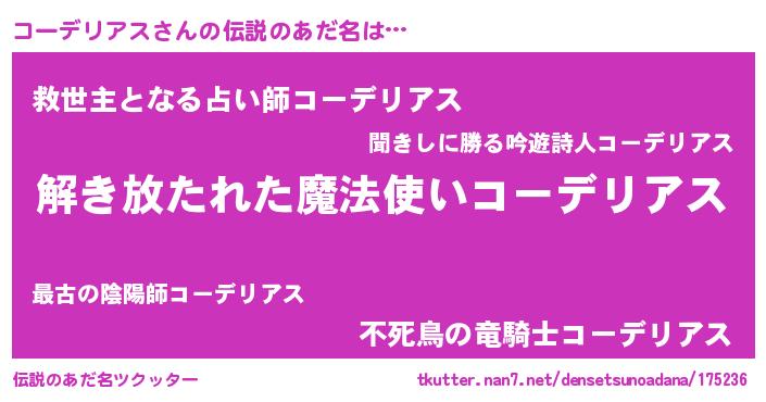 | 意味不明あだ名 | 『とにかく怪しいコーデリアス』 |