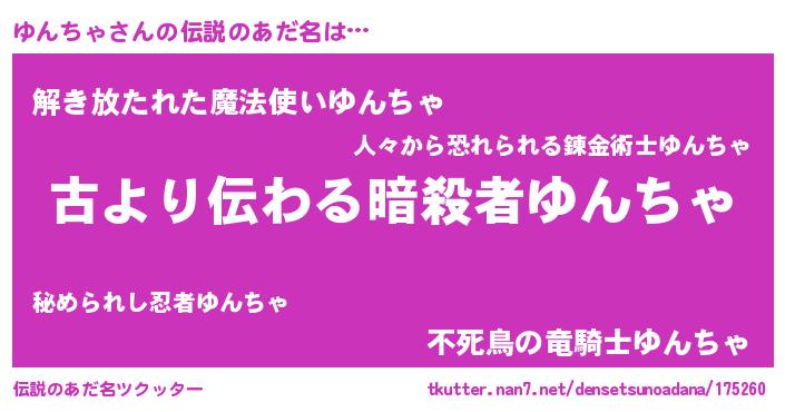 | 意味不明あだ名 | 『永久保存ゆんちゃ』『ペロリンゆんちゃ』 |