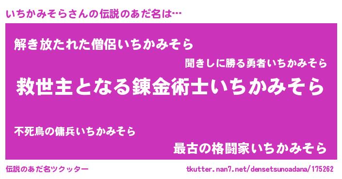 | 男性向けラノベタイトル風あだ名 | 『ノーゲーム・ノーイチカミソラ』 |