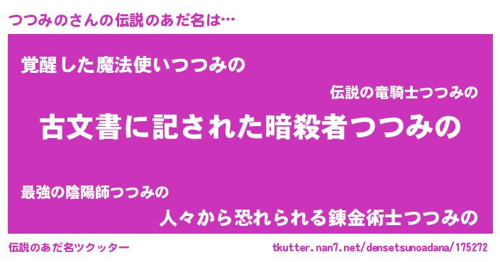 | 胡散臭い通販商品みたいなあだ名 | 『前代未聞の健康食品…その名も「つつみの」』 |