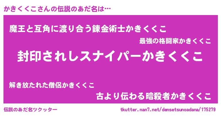 | 胡散臭い通販商品みたいなあだ名 | 『億万長者になれる霊験あらたかなお札…その名も「かきくくこ」』 |