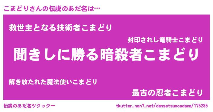 | ヒーロー風カッコイイあだ名 | 『ネオコマドリ』『正義の使者こまどり』 |