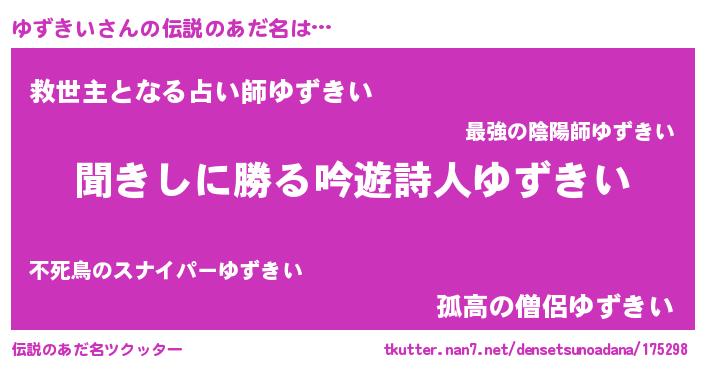| ヘコむあだ名 | 『ゆずきい(笑)』『ゆずぷりん』 |