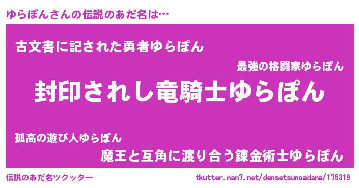 | ヒーロー風カッコイイあだ名 | 『スーパーユラポン』『ネオユラポン』 |