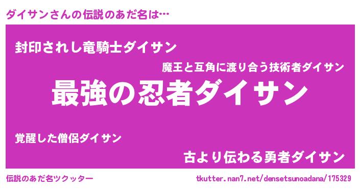 | ヒーロー風カッコイイあだ名 | 『ウルトラダイサンマン』『仮面ダイダー』 |
