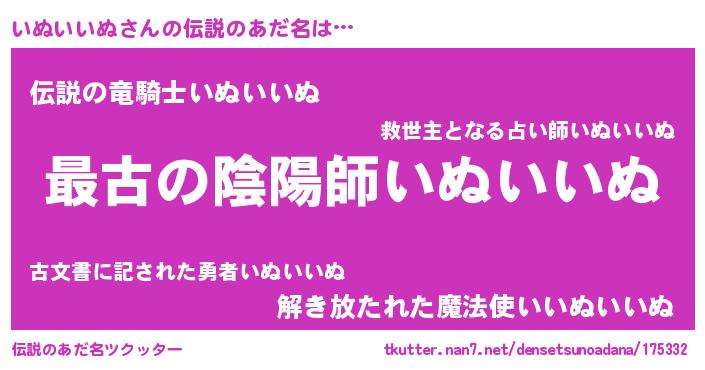 | ファンタジー風あだ名 | 『エターナルイヌイイヌー』『イヌフェル』 |