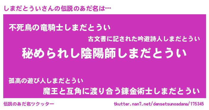 | 男性向けラノベタイトル風あだ名 | 『シマダトウイスレイヤー』 |