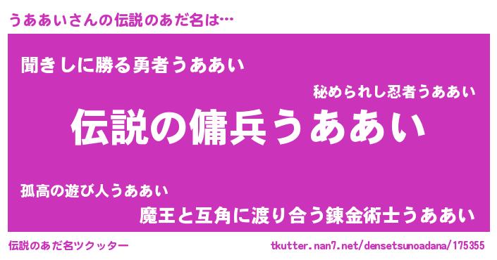 | 男性向けラノベタイトル風あだ名 | 『うああいの憂鬱』『魔弾の王とうああい』 |