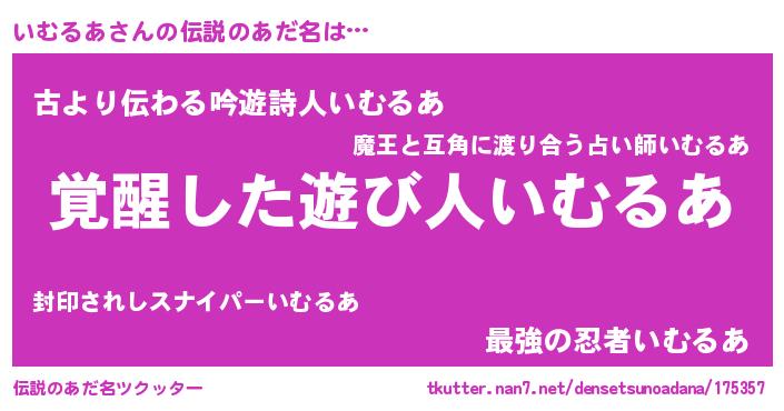 | 女子向けラノベタイトル風あだ名 | 『いむるあ様がみてる』 |