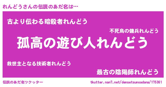 | 意味不明あだ名 | 『とにかく怪しいれんどう』 |