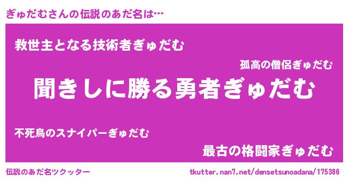 | ヒーロー風カッコイイあだ名 | 『ネオギュダム』『天空の使者ぎゅだむ』 |