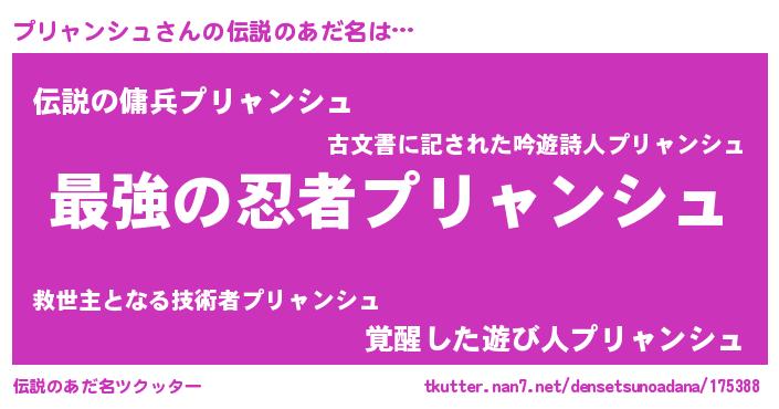 | 意味不明あだ名 | 『プリャンシュフォーエバー』 |
