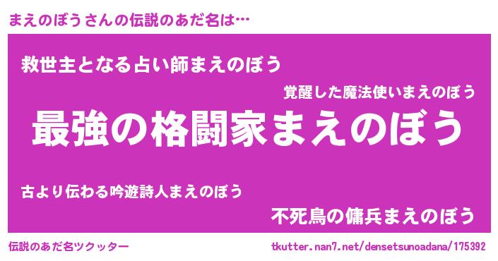 | ファンタジー風あだ名 | 『エターナルマエノボウー』 |
