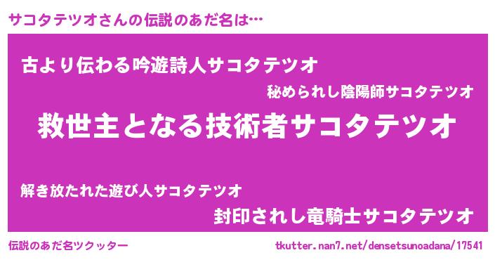 | 意味不明あだ名 | 『自称サコタテツオ』 |