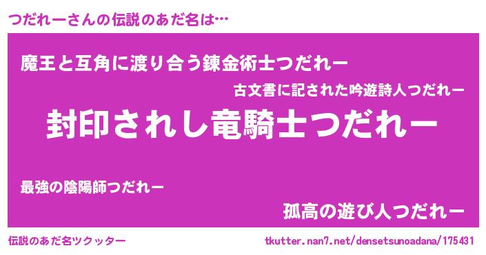 | 男性向けラノベタイトル風あだ名 | 『ツダレーアートオンライン』 |