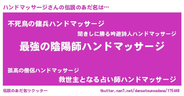 | ファンタジー風あだ名 | 『エターナルハンドマッサージー』 |