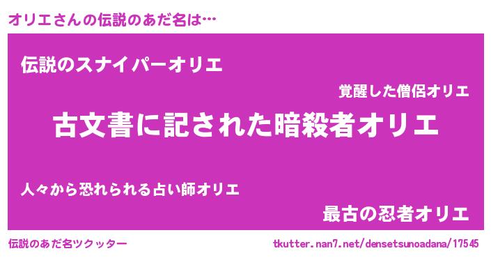 | 男性向けラノベタイトル風あだ名 | 『Re:オリエから始める異世界生活』 |