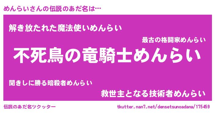 | 女子向けラノベタイトル風あだ名 | 『めんらい姫と円卓の騎士』 |