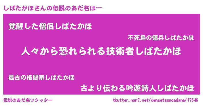 | ヒーロー風カッコイイあだ名 | 『仮面シバダー』『天空の使者しばたかほ』 |