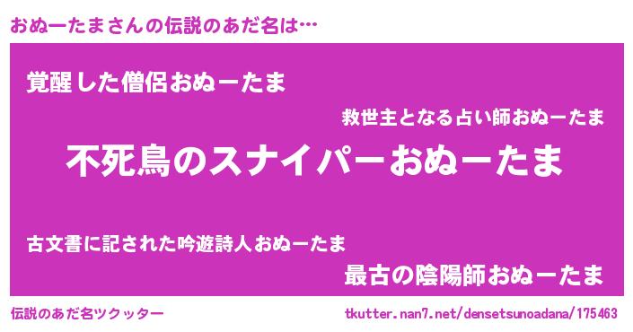 | 女子向けラノベタイトル風あだ名 | 『おぬーたま姫と円卓の騎士』 |