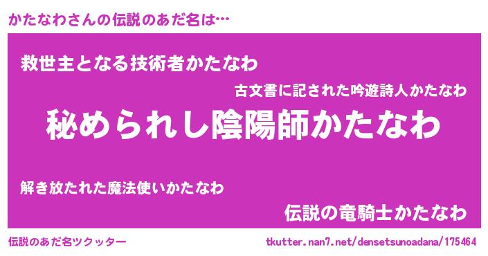 | 欧米人風あだ名 | 『かたなわ・ステッグマイヤー』 |