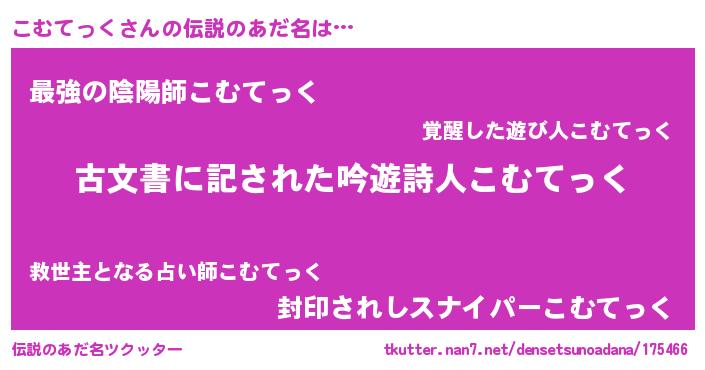 | 意味不明あだ名 | 『永久保存こむてっく』『自称こむてっく』 |