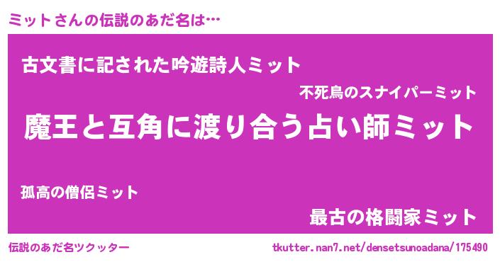 | ヒーロー風カッコイイあだ名 | 『仮面ミッダー』『愛の使者ミット』 |