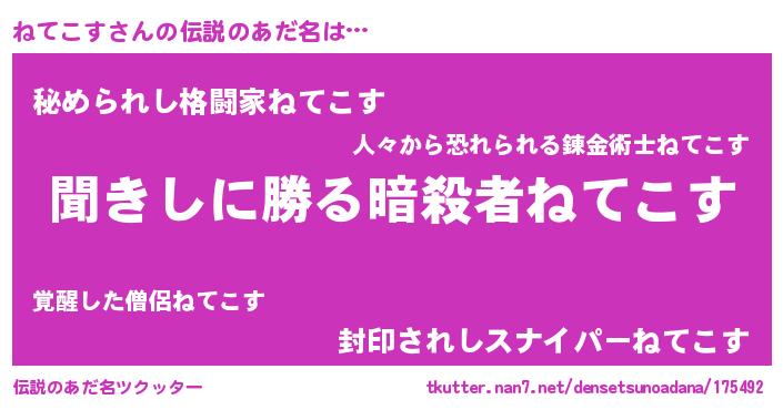 | 女子向けラノベタイトル風あだ名 | 『ねてこすアンティーク』 |