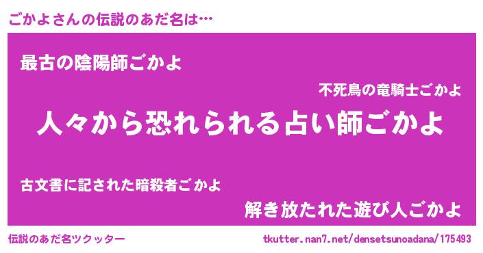 | ヒーロー風カッコイイあだ名 | 『正義の使者ごかよ』『最強戦士ゴカヨ』 |