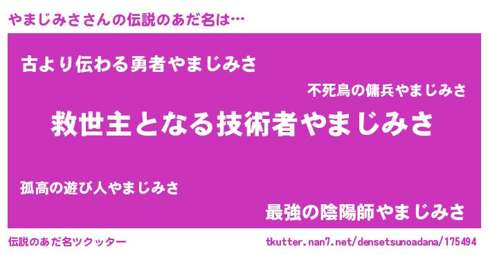 | 男性向けラノベタイトル風あだ名 | 『やまじみさに滅ぼされるだけの簡単なお仕事です』 |