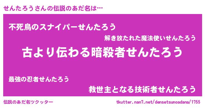 | 胡散臭い通販商品みたいなあだ名 | 『来世でも幸せになれる健康食品…その名も「せんたろう」』 |