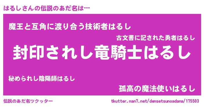 | 胡散臭い通販商品みたいなあだ名 | 『億万長者になれるブレスレット…その名も「はるし」』 |