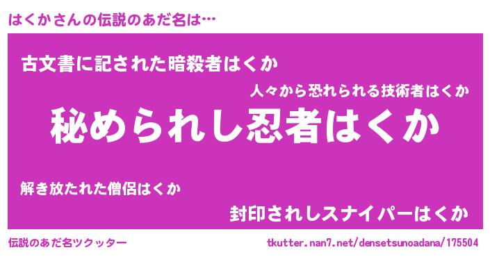 | 意味不明あだ名 | 『自称はくか』『ニラ科はくか属』 |